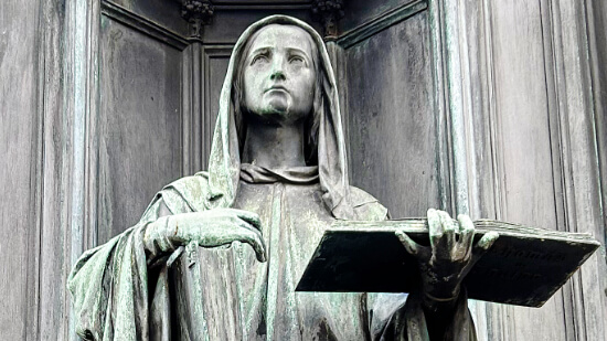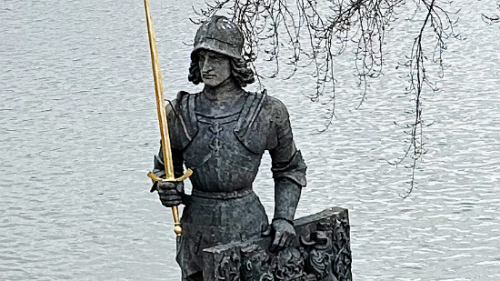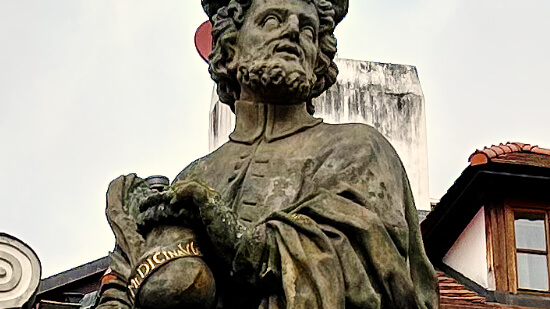 Jan Nepomucký – symbol morální síly a odvahy bránit čest. (Dle legendy odmítl prozradit tajemství královny.)
